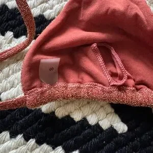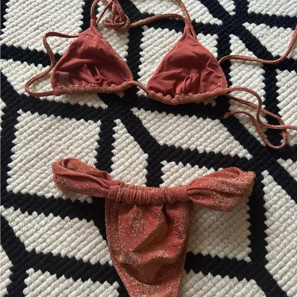 Elevate your beach style with this elegant rust bikini set. The shimmering design adds a touch of glamour to your swimwear collection.