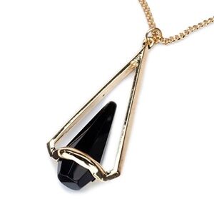 Modern Design: This statement necklace features a bold black geometric pendant framed in sleek gold-tone metal, offering a chic, contemporary look that elevates any outfit.
