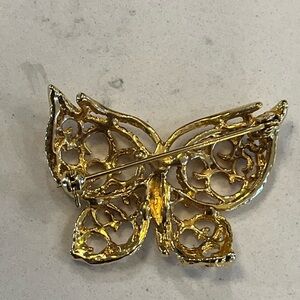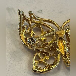 Elegant gold butterfly brooch with intricate design. Vintage, delicate, feminine
