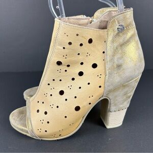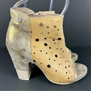 Step out in style with these chic gold perforated heeled boots. Perfect for adding a touch of sophistication to any ensemble.