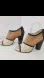 Gold Button Stylish Black and Tan Women Booties Size 37 Leather Heels