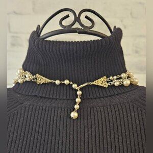 Gold Chains with Pearls Necklace.