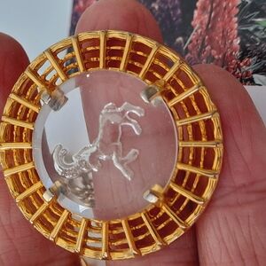 vendome aries stunning gold necklace features a captivating circular pendant with a textured outer ring, reminiscent of a sun or gear. The pendant's inner disc is crafted from carved glass, adding an elegant contrast. Paired with a substantial gold chain, this piece is both luxurious and eye-catching.