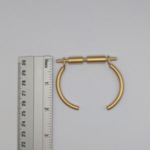 Elegant gold bangle bracelet with a sleek design. Base metal unknown.