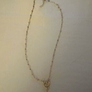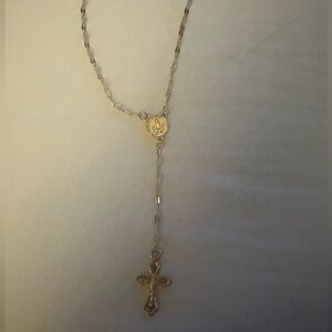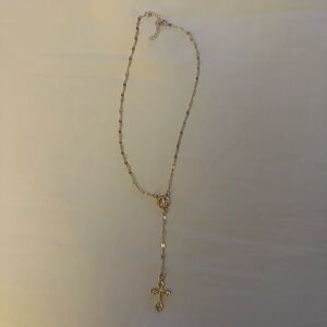 necklace features a stunning gold and for your hands design rosary, gold plated, perfect for adding a touch of sophistication to any outfit. The cross pendant adds a timeless charm.