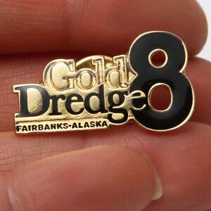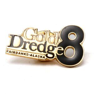 Gold Dredge 8 Fairbanks Alaska Pin Enamelled Metal Gold Black Souvenir Travel