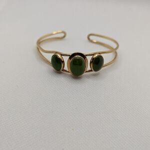 This bracelet features a stunning combination of gold filled and jade perfect for adding a touch of sophistication to any outfit. Its sleek design makes it a versatile accessory for any occasion. 1/20 gold filled with natural jade