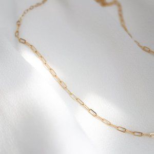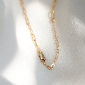 This 16 or 18 inch necklace is made using a beautiful gold filled paperclip chain! The paperclip links measure at 3mm. It would layer beautifully with a few other necklaces or alone for a simple look.