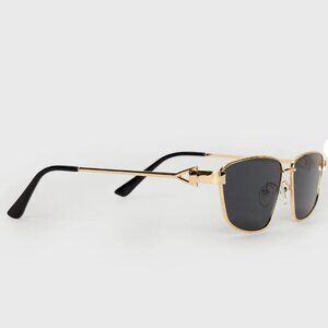 Gold Frame Rectangular Sunglasses • Black Lens Unisex Retro Style NEW WITH CASE.