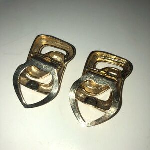Elegant gold geometric shoe buckles perfect for any occasion. Add a touch of sophistication to your outfit. Change up the style of shoes by adding these gold little buckles. Preloved. May have some scratches from peruse. Please check pics over.