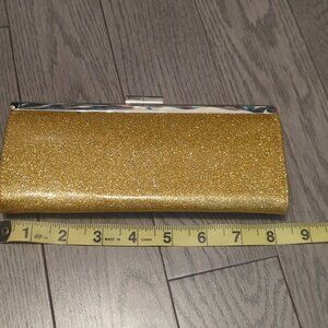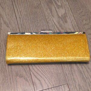 Shimmer and shine with this stunning sleek gold glitter clutch. Perfect for evening events and special occasions.