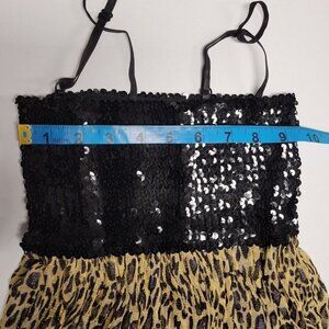 Spaghetti Strap Sparkly Golden Brown Animal Print Mini Dress with a stretch sequin Bustier