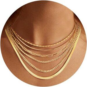 【Diverse Layered Necklace Collection】-- Discover the ultimate in trendy jewelry with our layered gold necklaces, perfect for women who love elegance in their everyday look. This collection features an array of styles from chunky herringbone, rope, and Cuban chains to dainty snake and paperclip designs, making it an essential set for every stylish wardrobe.