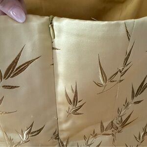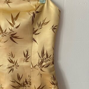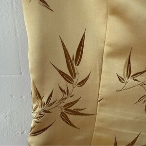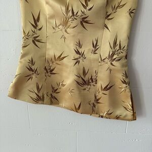 Serve goddess in this show-stopping gold leaf bustier corset. It reminded me of a top I had when I was in my early twenties and now you can live out my nostalgia! Features metallic gold embroidery in a leaf motif over a structured bodice, boning, rubber strip to keep it up, a zip back closure and asymmetrical bottom. Whether you’re styling it with denim for a night out or layering it over a button-up for that editorial vibe, this piece brings the main character energy. It's tagged an XL but definitely fits more like a XS/S (smaller cup size). There is some very slight pulling (see last two photos) but otherwise is it in excellent pre-owned condition.