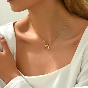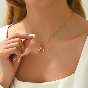 ⚡Gold Necklace for Women 18K Gold Plated Crescent Moon Sun Shoe Horn Pendant