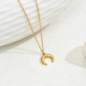 Material: Dainty gold moon pendant necklace is made of stainless steel and 18K gold plating. This gold necklace is nickel-free, lead-free, cadmium-free and hypoallergenic for women