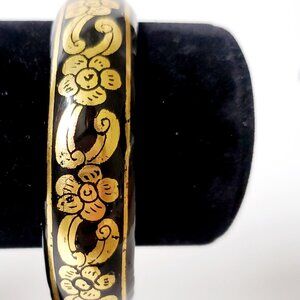 Gold Painted Black Lacquered Bangle Scroll Floral Motifs Folk Art