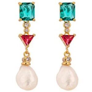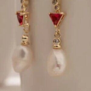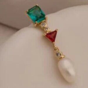 Materials: Gold plated copper with set-in cubic zirconia stones and natural pearl dangles.