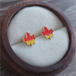 tags: sterling silver, S925, gold, gold plated,maple leaf, Canada, canadian , stud earrings