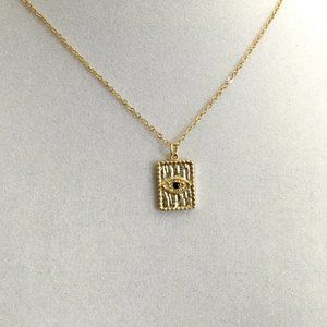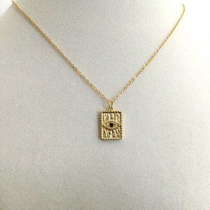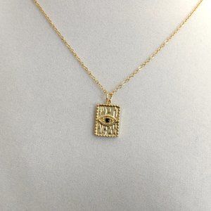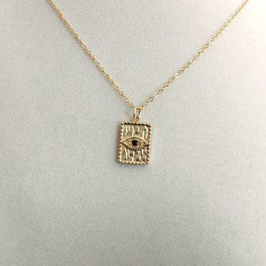 Gold Plated Evil Eye Rectangle All Seeing Eye Cubic Zirconia Charm Necklace