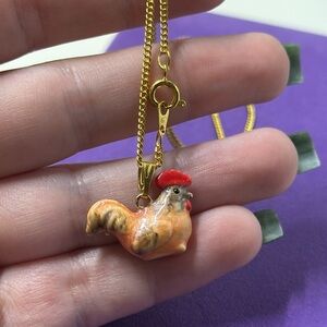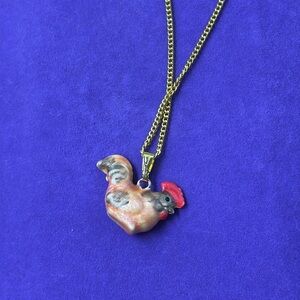 Charming gold necklace featuring a colorful rooster pendant. Perfect for adding a playful touch to any outfit. I have many different animals available. Would make great kid birthday party gift bag gifts!
