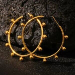 Gold Plated Stainless Steel Big Hoops with Ball Earrings