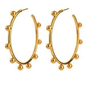 Gold Plated Stainless Steel Big Hoops with Ball Earrings