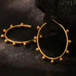 Feel Beautiful Everyday with these large gold plated stainless steel hoops set with hollow gold balls. What fun and unusual hoops, sure to be noticed.