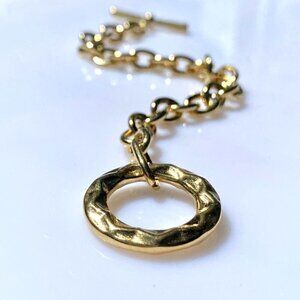 Feel Beautiful Everyday with this gold plated stainless steel cable chain bracelet with a sculpted toggle clasp. Heavyweight, this is sure to become a favourite very quickly.