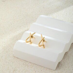 ⚡Gold Plated X Shape Hoop Earrings for Women Stylish Lightweight Fashion Jewelry
