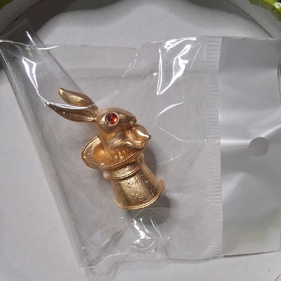 Elegant gold rabbit brooch featuring a striking red accent. Perfect for adding a whimsical touch to any outfit.