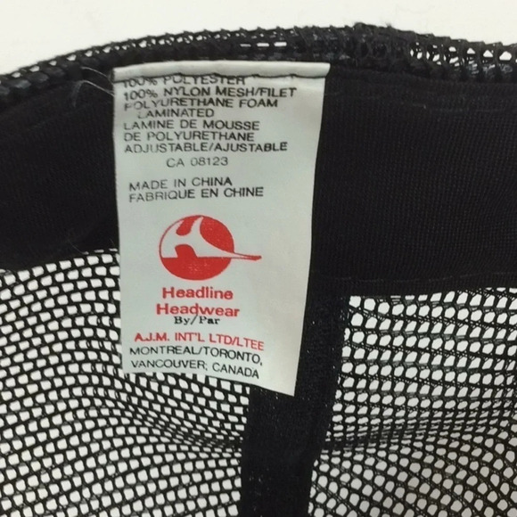 Black SnapBack hat in good condition. 100% nylon mesh back with 100% polyester quilted texture front. No visible damage. Made in China.