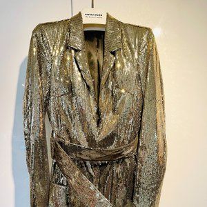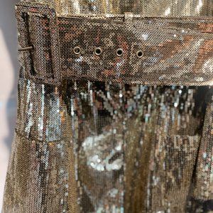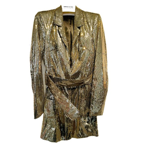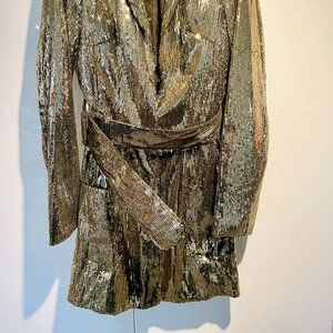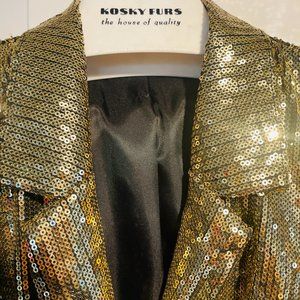 This dreamy double breasted, belted sequin blazer is a show stopper at any party. It's not stiff, but the belt gives it a beautiful hour glass shape and a slight vintage look.