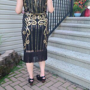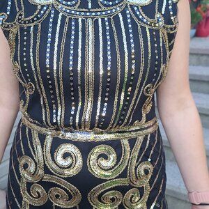 Gold sequin on Black Size Large Festive flapper dress Comfortable fit 100% Polyester