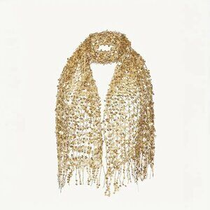 Gold sequins net scarf with fringes, acrylic, 162cm x 50cm