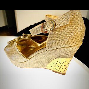 Gold Sparkle Dressy/Formal Sandal with Peep toe
