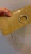 Evening clutch made of shiny vegan vinyl. Color is gold with darker gold spots. Spotted pattern.