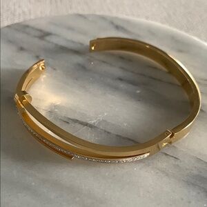 Gold Stainless Steel Nail Bangle Bracelet with Crystals