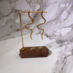 Dare to stand out with this stunning 2-pair earring set, crafted in durable stainless steel with gold plating. Featuring sleek, serpentine drop earrings and sparkling evil eye studs, this duo offers fierce energy and protection vibes in one versatile package. Style together for an edgy, curated look, or wear separately to match your mood.