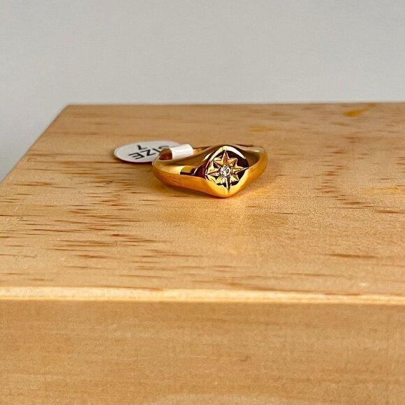 Gold Starburst Star Signet Ring Minimalist Stainless Steel