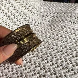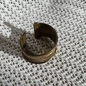 Elegant gold cuff bracelet with intricate textures. Perfect for adding a touch of sophistication.