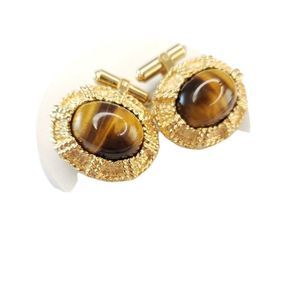 Gold & Tigers Eye Cufflinks & Matching Tie Pin