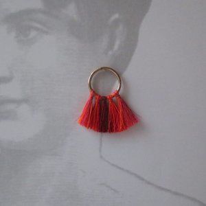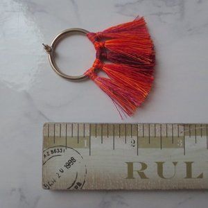 Gold Tone Coral Orange Burgundy Red and Pink Tassel Circle Loop Stud Earrings