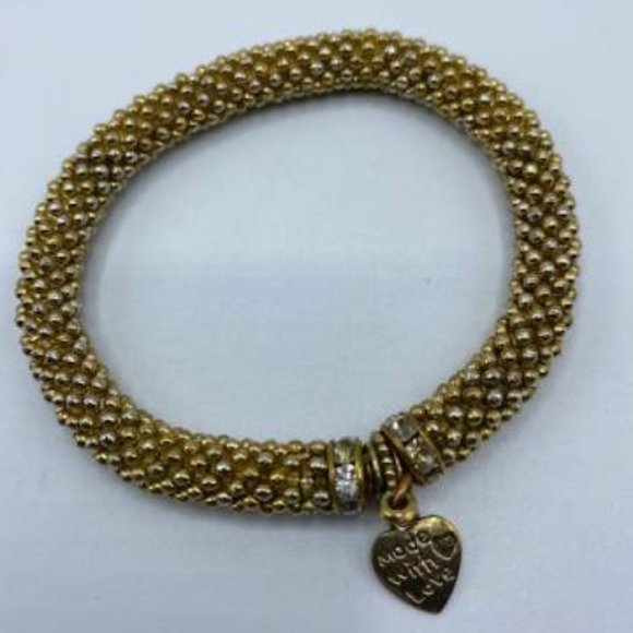 Effervescence style bracelet with metal beads and rhinestone circle accents
