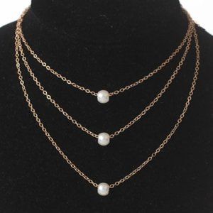 Gold Tone Faux Pearl Multilayer Pendant Necklace
