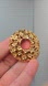 Beautifully crafted large circular brooch featuring an open center design. Finished in a bright, shiny gold tone with a rich, uniform color.
