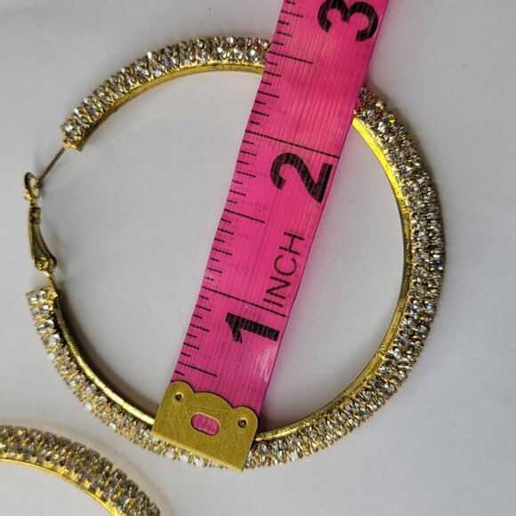 Gold Tone Hoop Crystal Encrusted Hoop Earrings