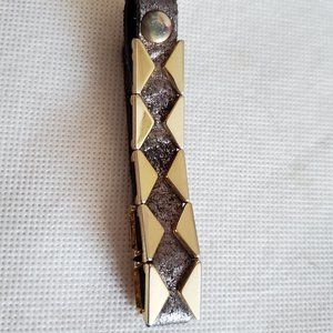 7.5" Star King Gold Tone Panel Bronze Leather Button Bracelet Pre-owned in excellent condition