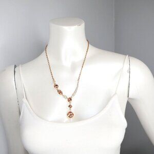 Gold Tone Pendant Necklace Rhinestone Pink Gems Asymmetrical Fashion Jewelry