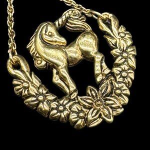Gold Tone Pierced Earrings Dangling Unicorn Horse Floral Metal